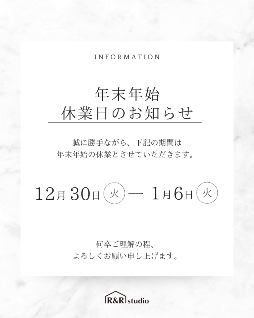 【年末年始休業並びに、1月の営業日】のご案内です。
