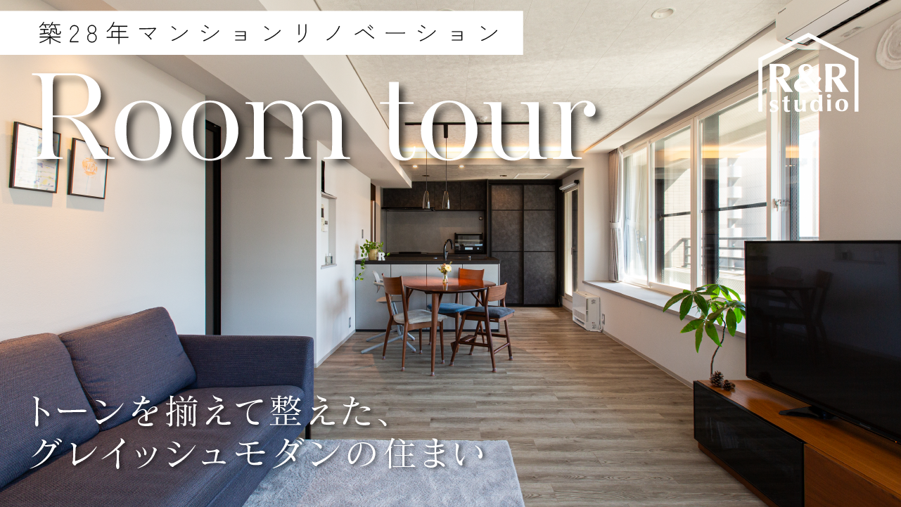 【新着動画公開】ルームツアー「築28年マンションフルリノベ|回遊動線と収納計画で整えたグレイッシュモダンの住まい」