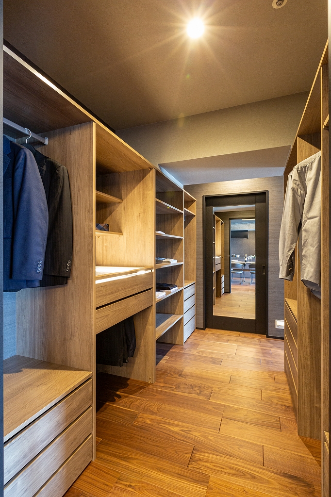 旦那様エリアと奥様エリアを明確に分け、何をどこに収納するか細かく打ち合わせを行い、最適なプランを作成しました。