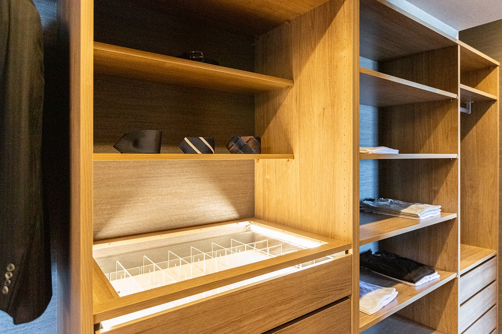 旦那様エリアと奥様エリアを明確に分け、何をどこに収納するか細かく打ち合わせを行い、最適なプランを作成しました。