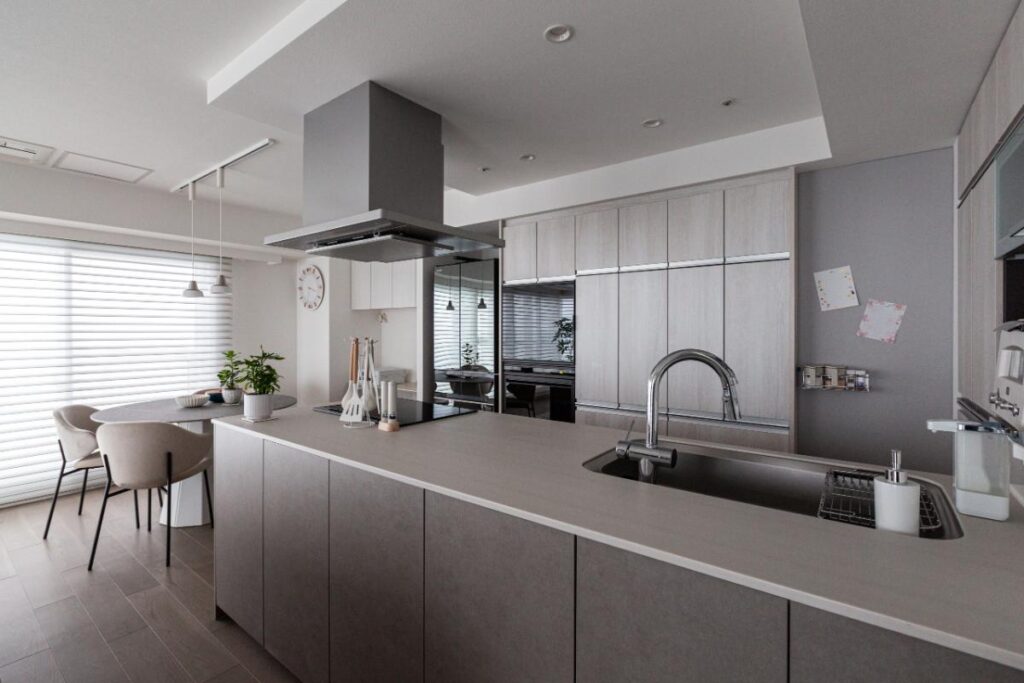 リノベーション前の生活で一番不便を感じていたのは、キッチンだと奥さまは話します。以前は壁付きのコの字型キッチンで、シンクと作業スペースが反対側にあり、調理がしにくかったそう。