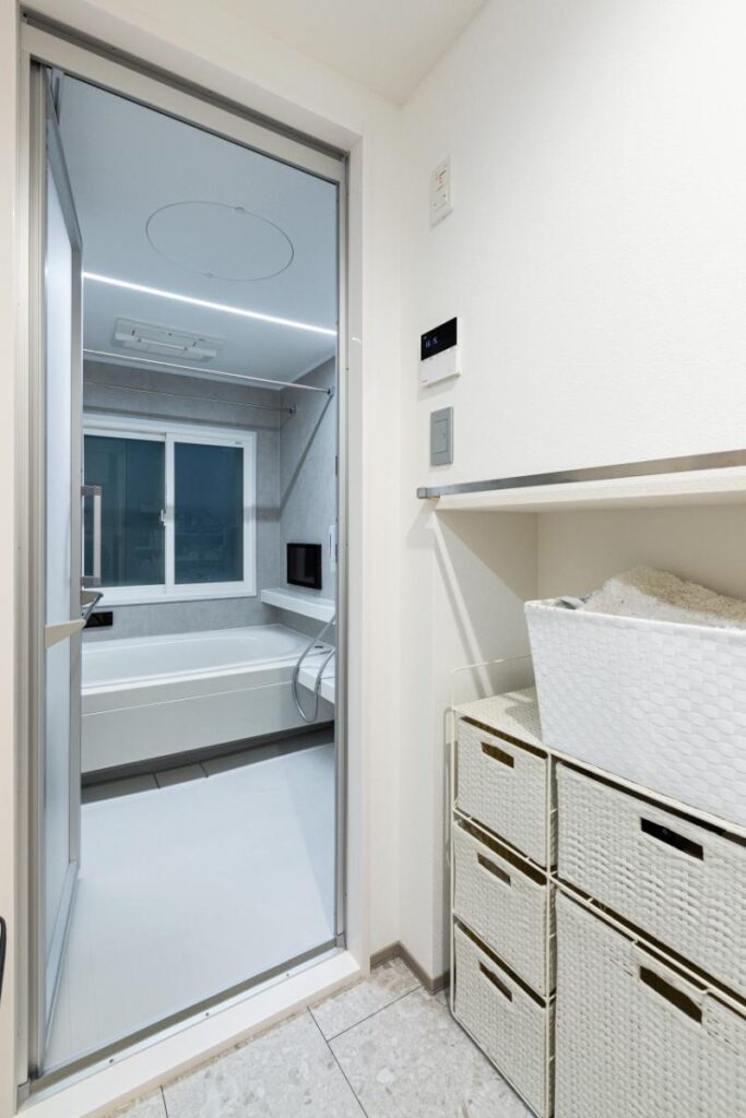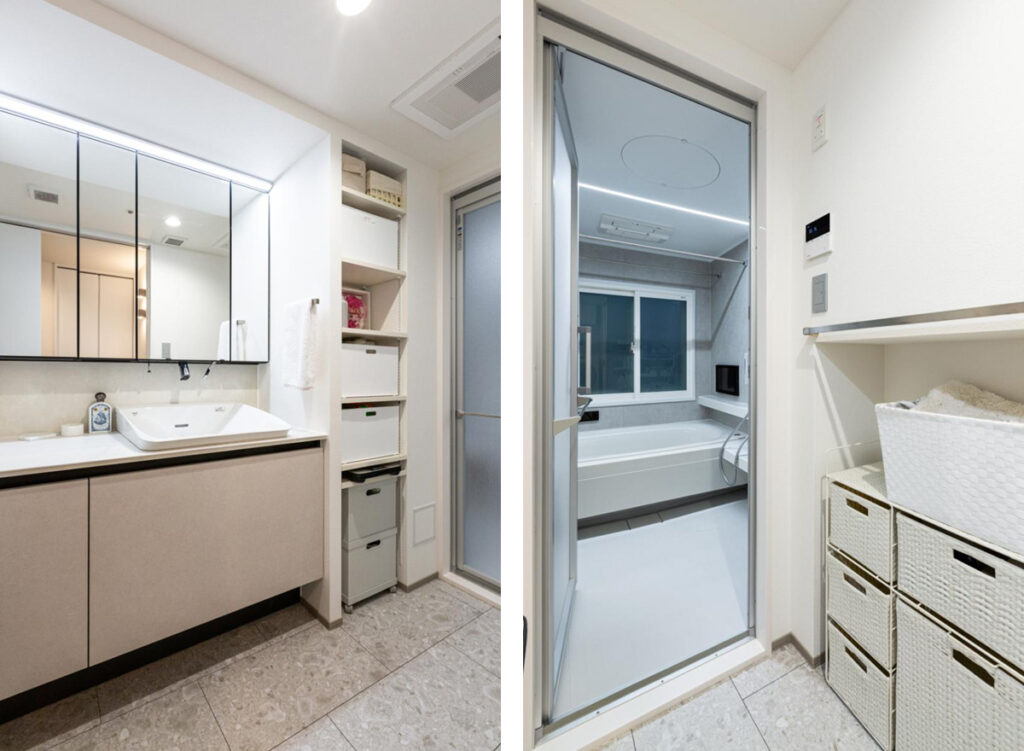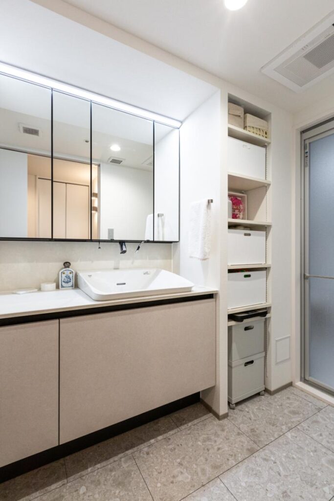 洗面脱衣室は収納たっぷりで便利に