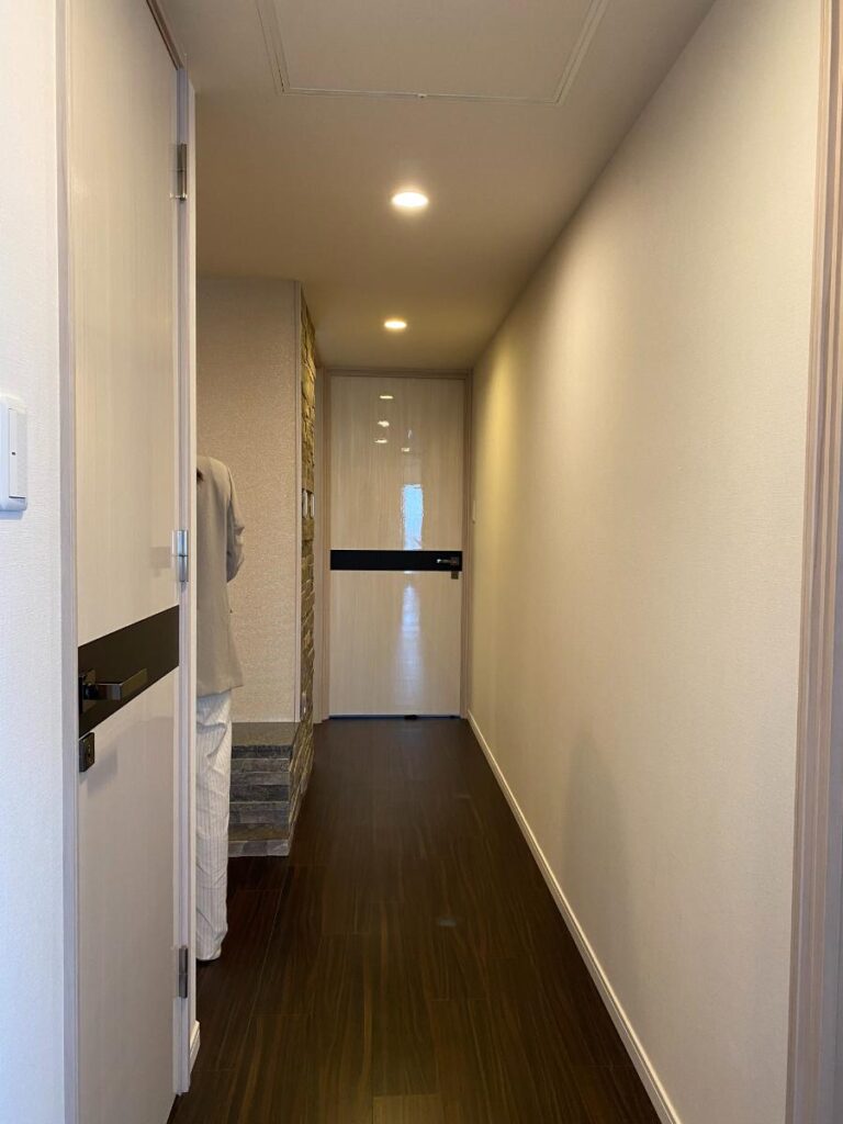 間接照明で高い意匠性を実現したホテルライクな玄関ホールと廊下