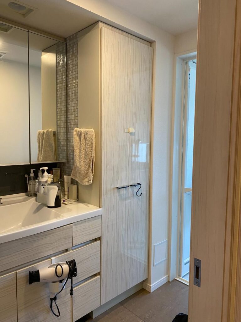 以前の洗面脱衣室は、狭くて収納が少なく、空気がこもって夏は蒸し暑くなりがちでした。