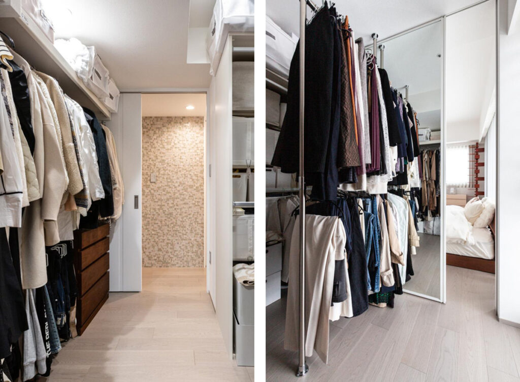 Kさん ウォークインクローゼットは閉鎖的で使い勝手があまりよくありませんでした。スルー型にしたことで、衣類の収納や着替えの動線がスムーズになりました。